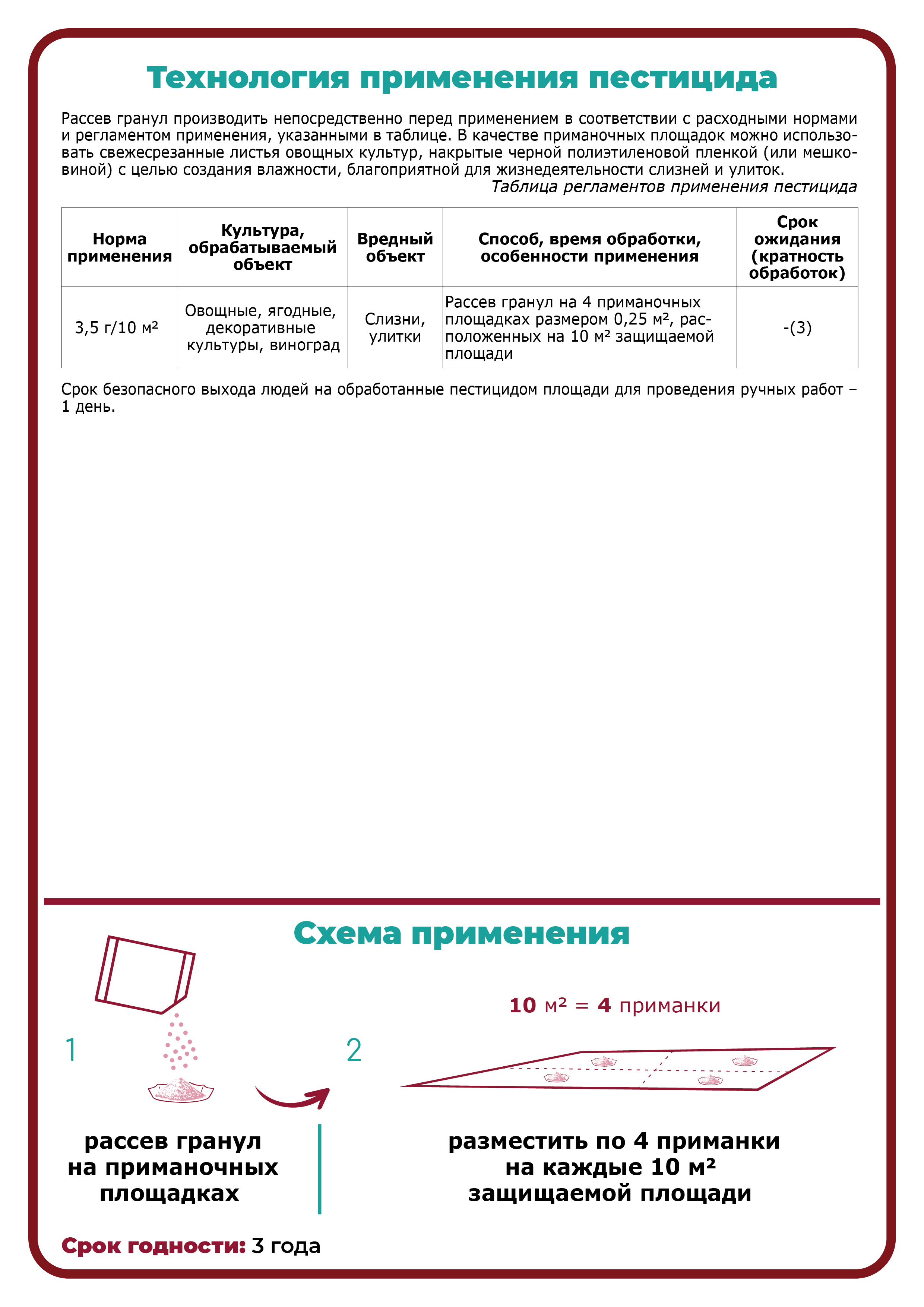 моллюскоцид для борьбы со слизнями и улитками на овощных, ягодных, декоративных культурах и винограде